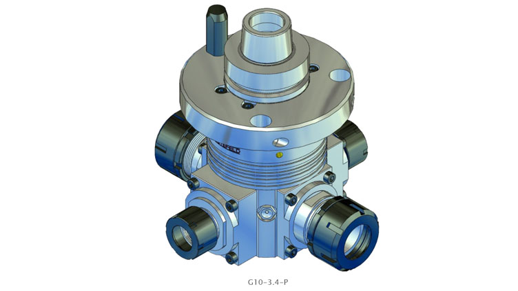 G10 系列的角頭具有帶兩個刀架的連續加工主軸。這意味著兩個刀架之一的主軸旋轉方向與驅動旋轉方向相同,另一個刀架的主軸旋轉方向與驅動方向相反。其他現有加工主軸與連續加工主軸呈90°角布置。